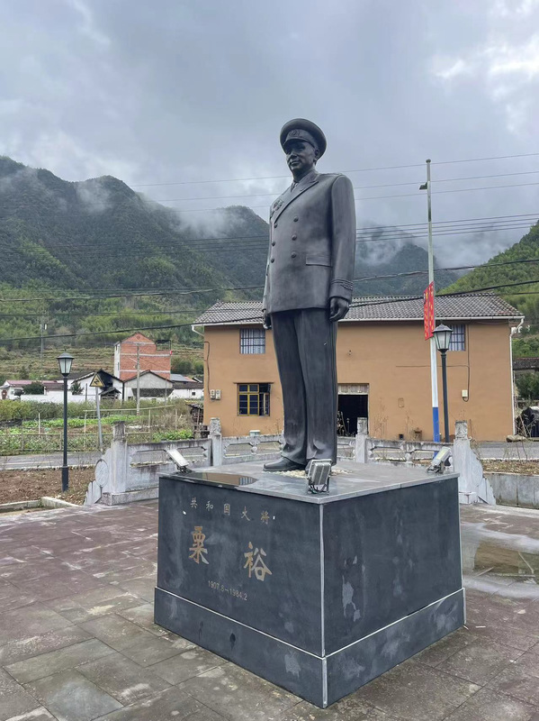 在银坑村的正中心,有一尊2.8米高的粟裕将军铜像。当年,粟裕领导的红军挺进师不仅在银坑(汤溪边区)根据地建立了党支部,还赢得了广大穷苦人民积极支持,成立了贫农团、妇女会、赤卫队,协助红军开展革命活动,打探敌情、提供补给、对外封锁消息等等,使部队有依托作战,有地方休整安置伤员,推动红色力量在婺南山区形成了星火燎原之势。