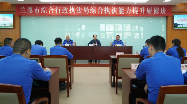 10月18日上午兰溪市综合行政执法局综合执法能力提升研修班开班仪式在我院图书馆学术报告厅举行,兰溪市综合行政执法局党委委员、副局长王寿丰,学院副院长郑荣泉出席开班仪式,市局机关党委副书记徐益民主持。