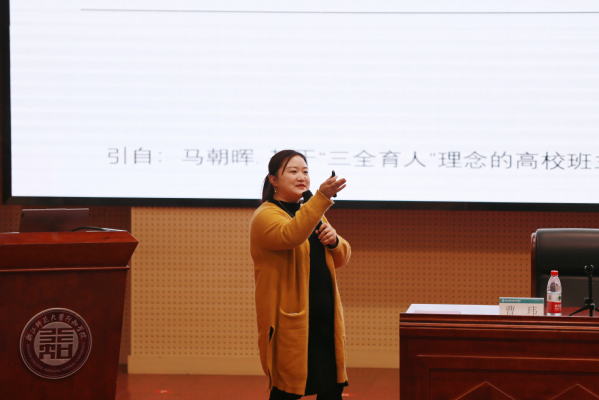 会上,浙江师范大学心理中心咨询师曹玮老师围绕《高校班主任心理助人谈话技能》分别从心理助人的谈话态度、谈话技巧等方面作了专题讲座,为班主任、辅导员在今后实际工作中处理学生问题提供了更多的思路和方法。