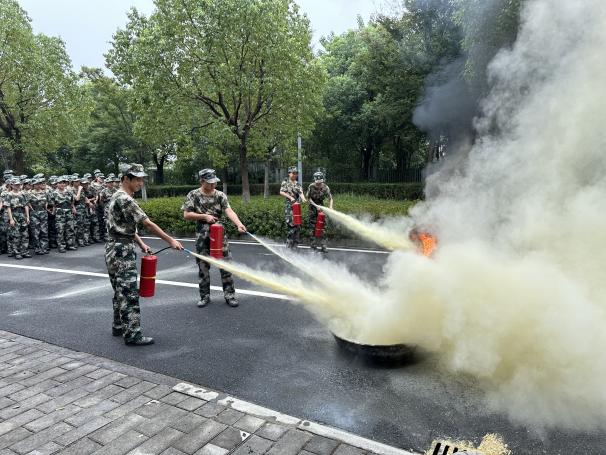 活动的最后,同学们在安防馆的西边出口集合,进行灭火器实操演练。演练开始前,校卫队员围绕常用的灭火器的使用方法、注意事项等方面进行了详细的讲解,并通过实操纠错的方式,指导同学们快速掌握灭火器的使用,提高应对初起火灾的实操能力。