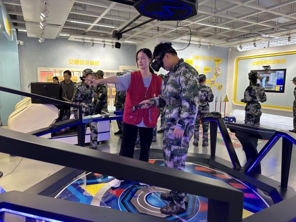 课程结束后,同学们在讲解员的带领下依次对安防馆内的交通教育馆、消防教育馆、禁毒教育馆、防暴教育馆进行参访,并在指导员的帮助下对馆内的各项设备进行逐一体验。