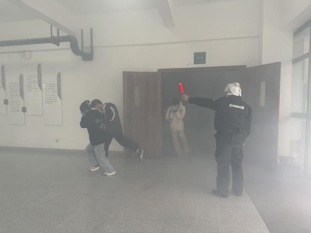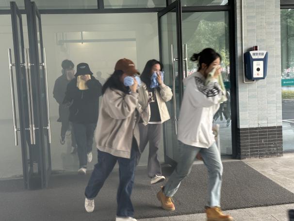 当天下午15:00,火灾逃生演练正式开始,演练内容是模拟学生在2号教学楼二楼上课期间线路短路引发火灾。随着急促的报警声响起,教学楼“烟雾”弥漫,学院立即启动应急预案、各部门密切配合,各工作小组第一时间按照应急预案采取相应措施。教室内的学生迅速跑向楼道,听从疏导员的安排,弯下腰,快步走,捂口鼻,有序地从指定路线安全逃生,仅用时5分钟,所有师生全部安全撤离至图文广场。本次演练大家配合密切,整个过程做到快速、安全、有序,达到了预期目标。