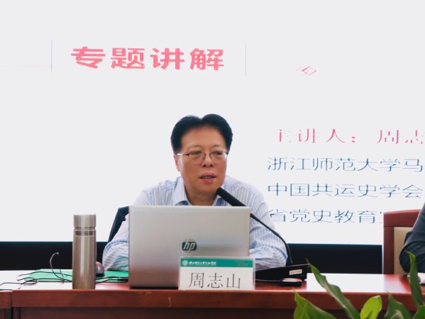 浙师大马克思主义学院周志山教授作专题导学。他通过“理论阐释+案例剖析+实践路径”的逻辑思路,深刻阐释了党的集中统一领导是实现民族复兴的根本保证。同时,他强调了中央八项规定精神是党的自我革命的重要抓手,对于净化政治生态、重塑党群关系具有里程碑意义。周教授指出:“八项规定不仅是一场作风革命,更是我们党永葆先进性和纯洁性的战略举措。”