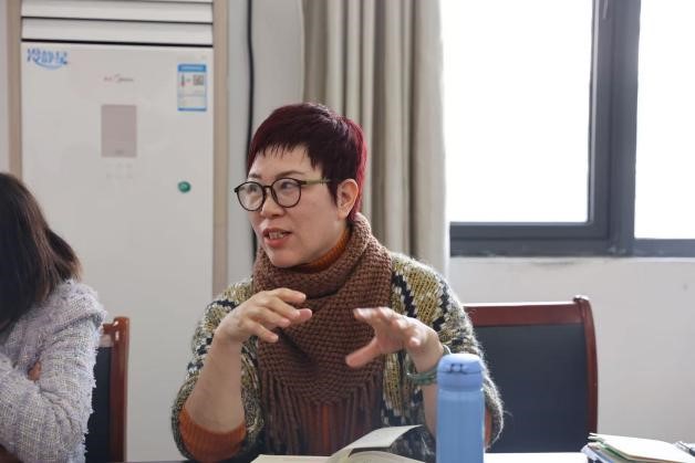 授课教师围绕教学目标、智慧工具应用及课堂管理展开阐述。袁敏老师提到课前思维导图反馈良好,学生通过绘制思维导图对课文结构有了更清晰的认识,在课堂讨论中能够更有条理地表达观点;魏晓彤老师分享了“学练结合、文化融汇”的设计思路,同时反思需进一步强化学生批判性思维培养。