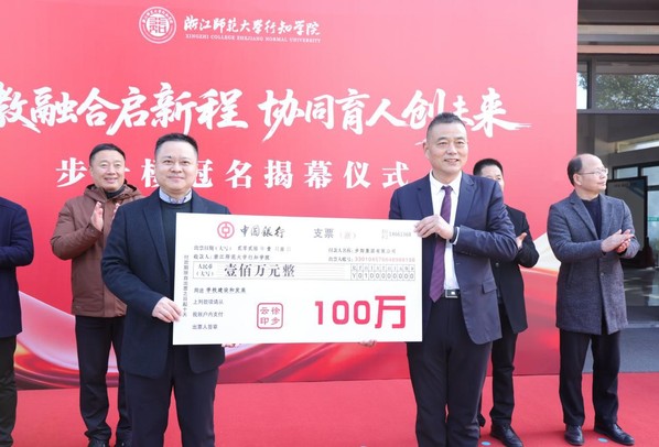 1月9日上午,学院在1号楼西大门前隆重举行步云楼冠名揭幕仪式。永康市统战部副部长、工商联党组书记陈英男,永康市工商联主席、步阳集团董事长徐步云,学院党委书记刘星喜,副书记陈建伟、陈天云,副院长郑荣泉、蒋芬君出席活动。步阳集团代表、永康市工商联企业家代表、学院师生代表等共同见证这一校企合作的重要时刻。仪式由学院副院长蒋永华主持。