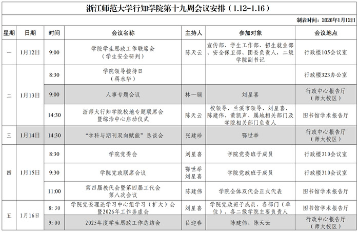 第十九周会议安排